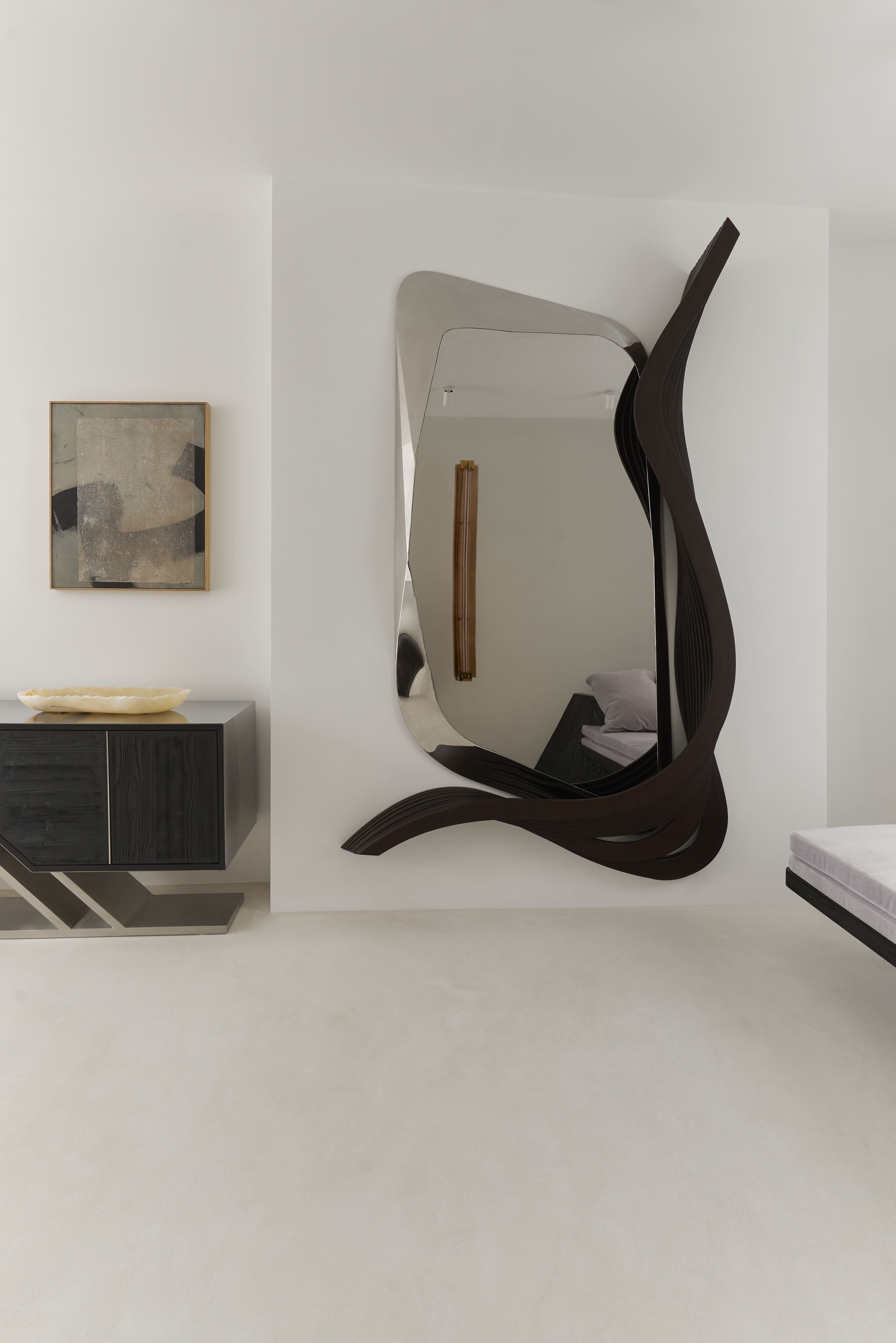 The mirror is available in a selection of wood and mirror finishes. For tear sheets and further information, please complete the enquiry form.
